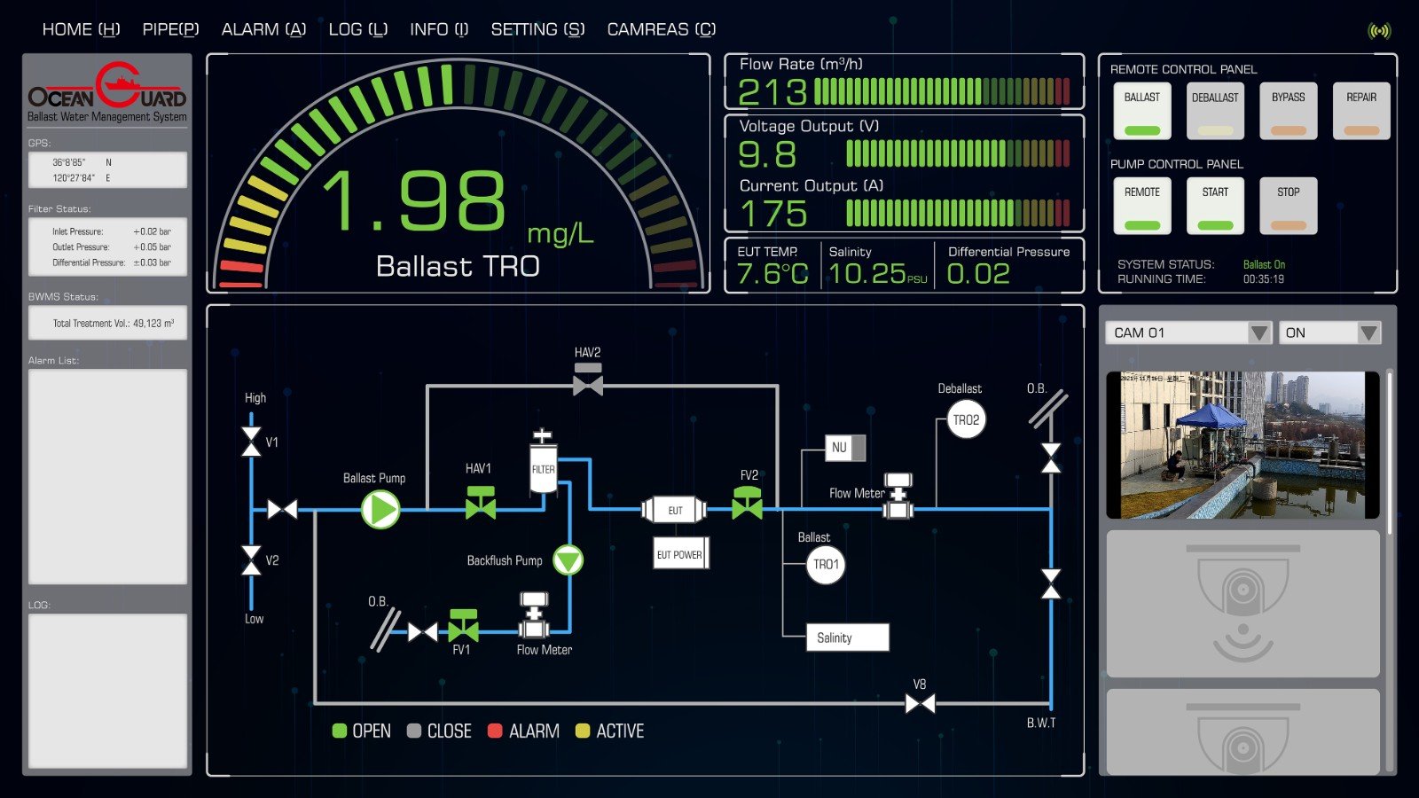 海洋卫士®压载水管理系统具备远程控制功能,可与海德威智慧集成平台实时互通,实现云端数据采集、系统操作与运行状况诊断。